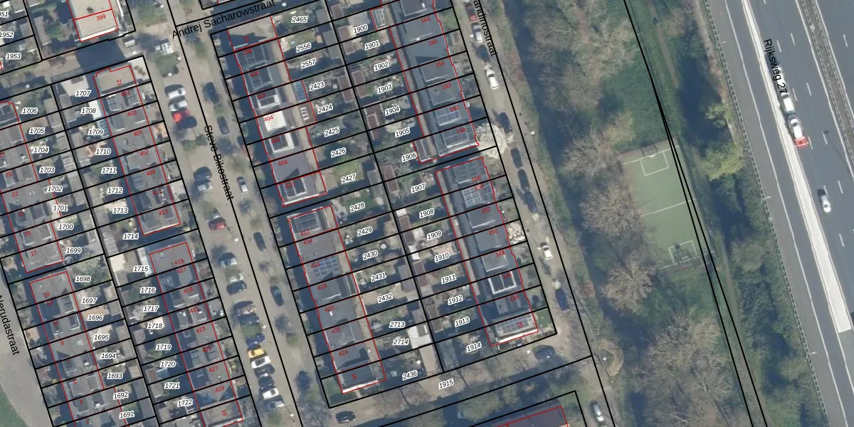 Gebruik de zoekbalk of klik op een perceel om informatie over het perceel te bekijken.