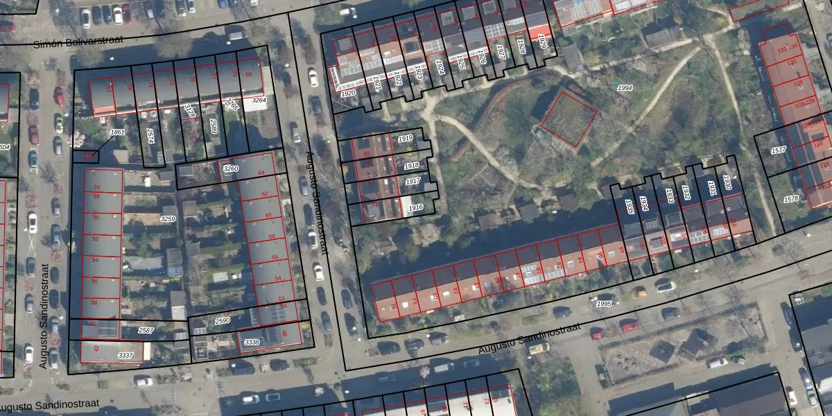 Gebruik de zoekbalk of klik op een perceel om informatie over het perceel te bekijken.