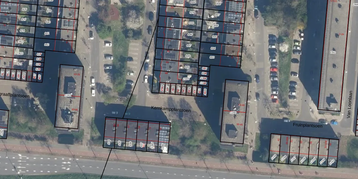 Gebruik de zoekbalk of klik op een perceel om informatie over het perceel te bekijken.