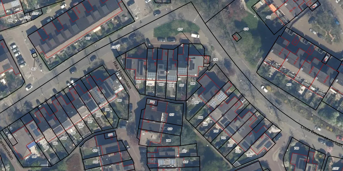 Gebruik de zoekbalk of klik op een perceel om informatie over het perceel te bekijken.