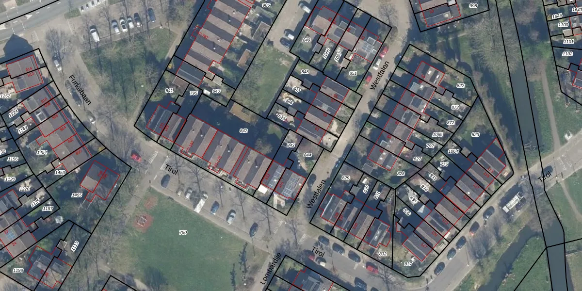 Gebruik de zoekbalk of klik op een perceel om informatie over het perceel te bekijken.