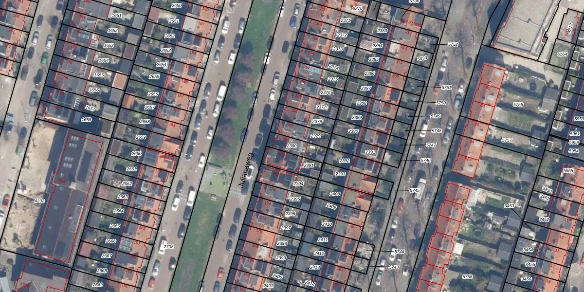 Gebruik de zoekbalk of klik op een perceel om informatie over het perceel te bekijken.