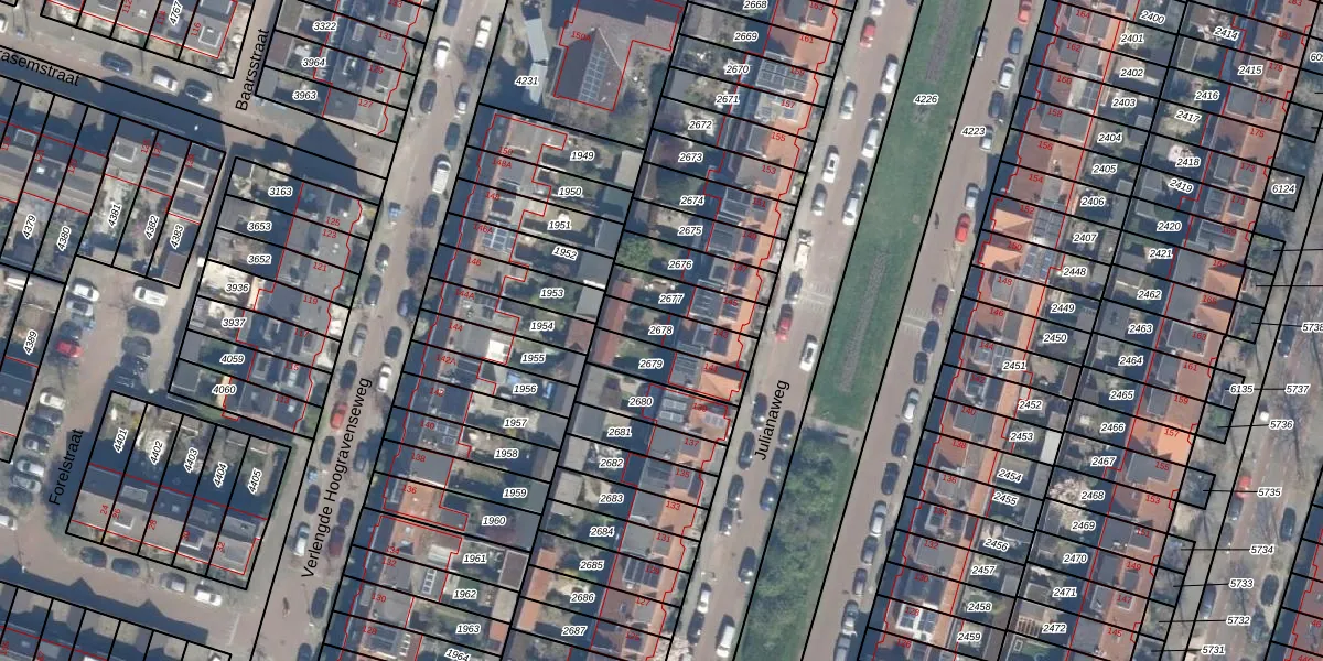 Gebruik de zoekbalk of klik op een perceel om informatie over het perceel te bekijken.