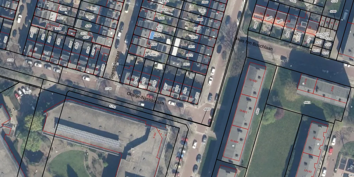 Gebruik de zoekbalk of klik op een perceel om informatie over het perceel te bekijken.