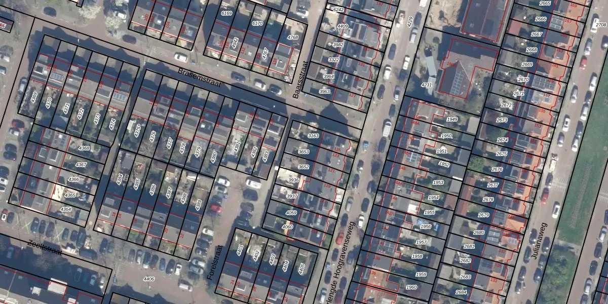 Gebruik de zoekbalk of klik op een perceel om informatie over het perceel te bekijken.