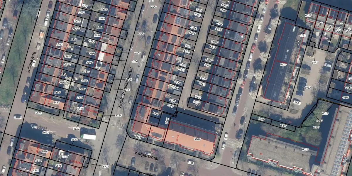Gebruik de zoekbalk of klik op een perceel om informatie over het perceel te bekijken.
