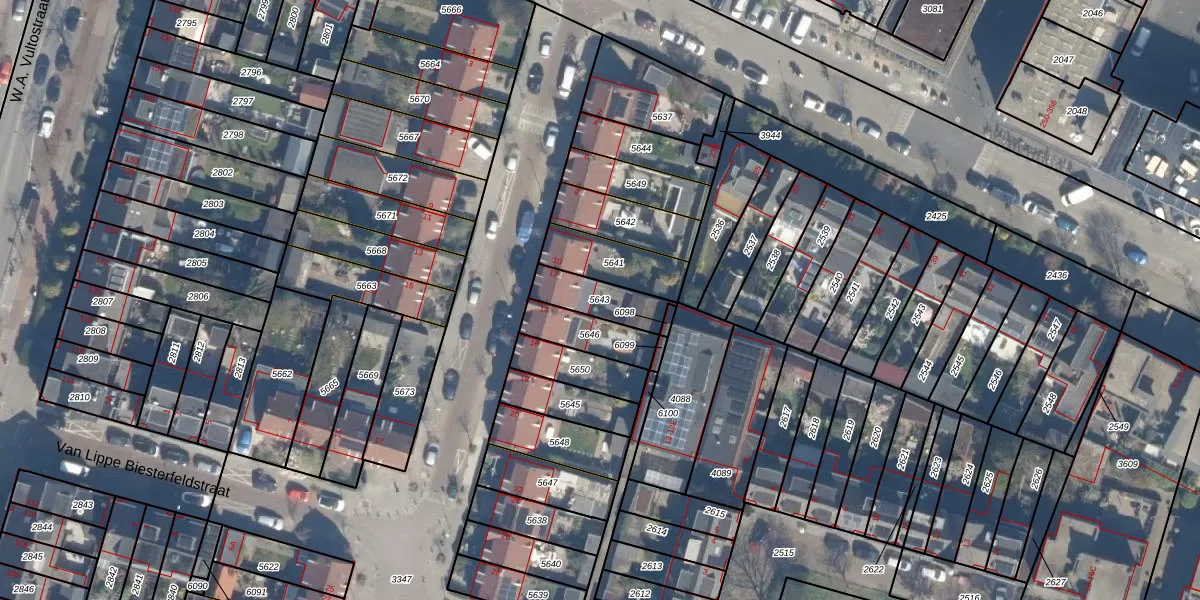 Gebruik de zoekbalk of klik op een perceel om informatie over het perceel te bekijken.