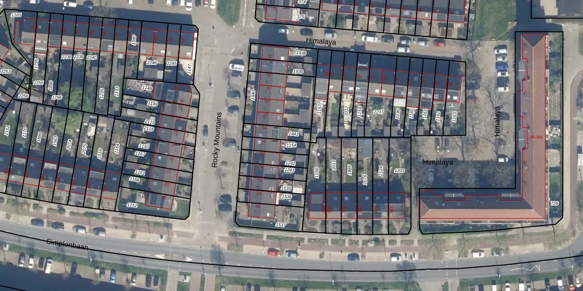 Gebruik de zoekbalk of klik op een perceel om informatie over het perceel te bekijken.