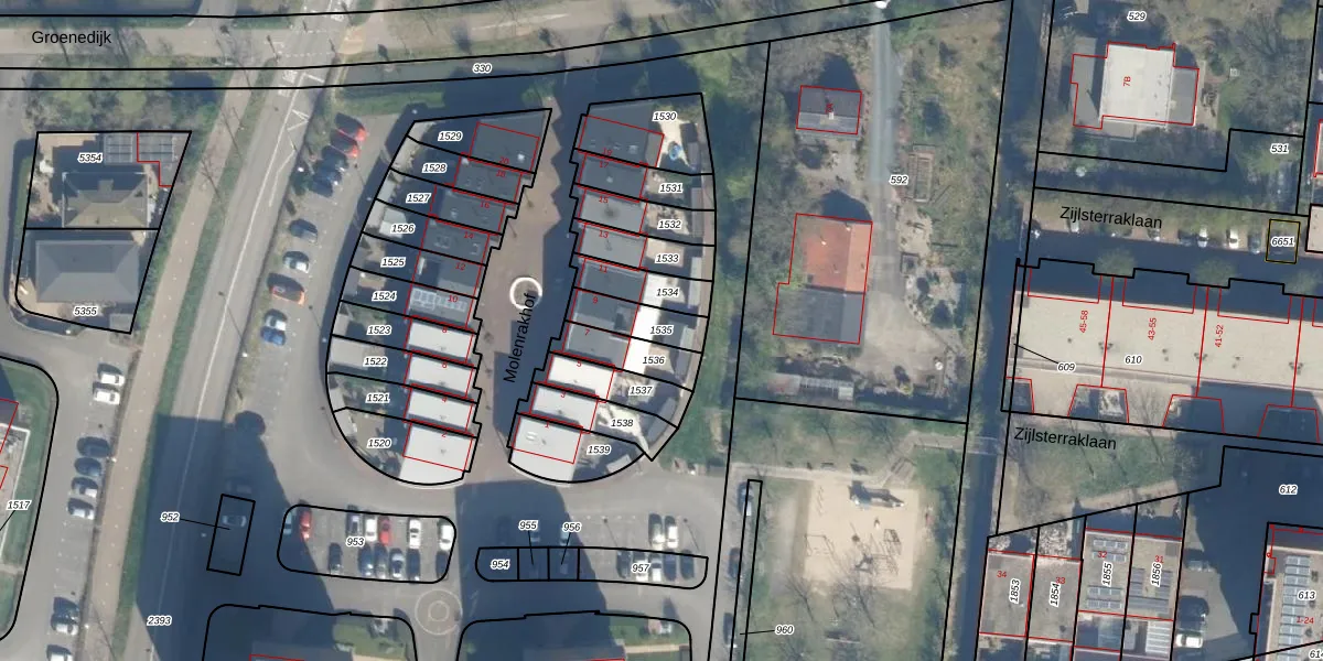 Gebruik de zoekbalk of klik op een perceel om informatie over het perceel te bekijken.