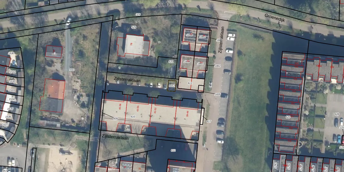 Gebruik de zoekbalk of klik op een perceel om informatie over het perceel te bekijken.