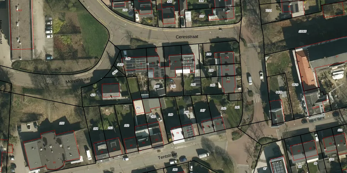 Gebruik de zoekbalk of klik op een perceel om informatie over het perceel te bekijken.
