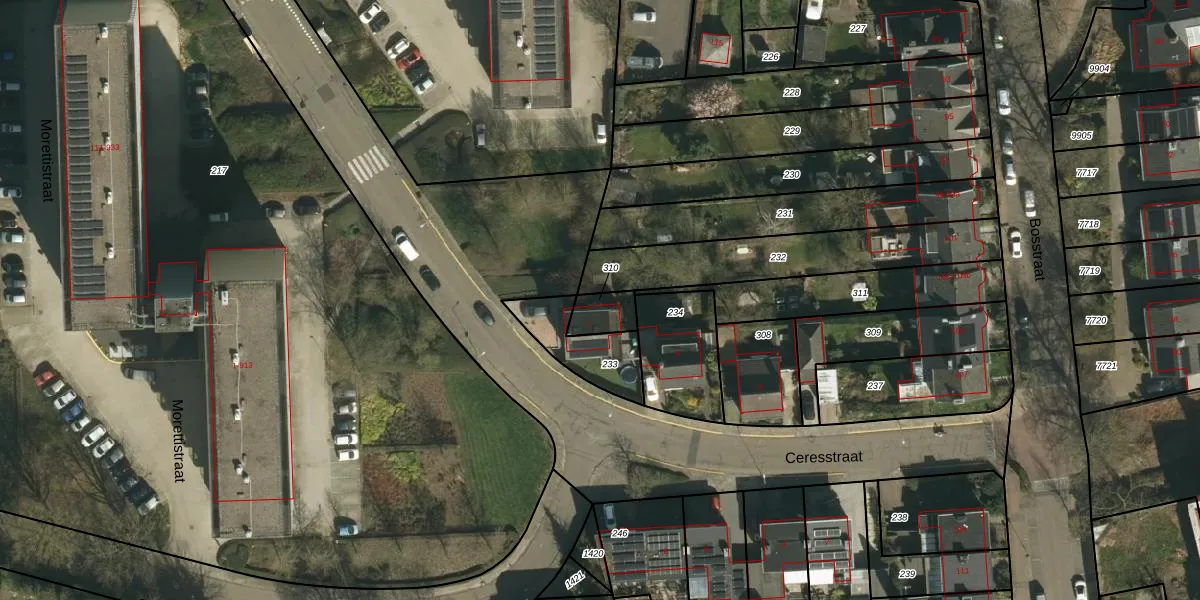 Gebruik de zoekbalk of klik op een perceel om informatie over het perceel te bekijken.