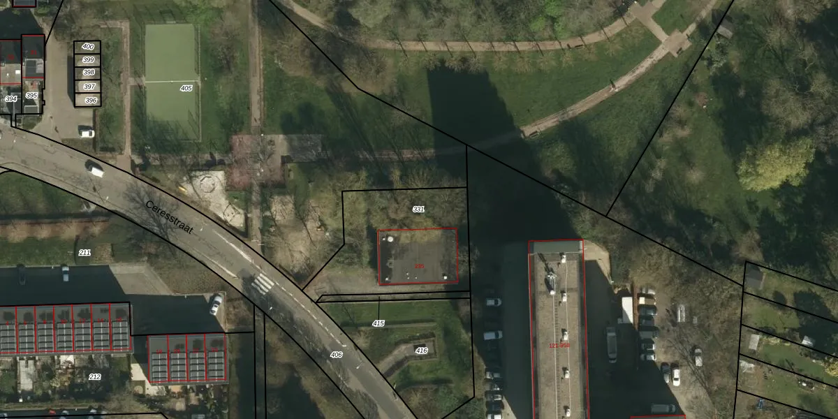 Gebruik de zoekbalk of klik op een perceel om informatie over het perceel te bekijken.