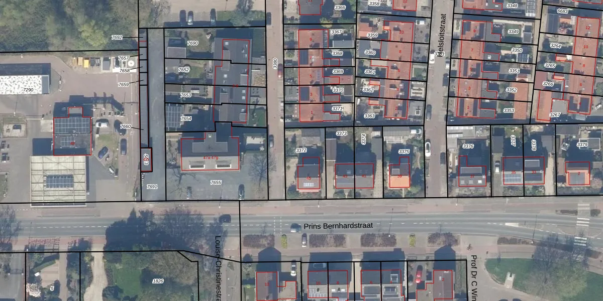 Gebruik de zoekbalk of klik op een perceel om informatie over het perceel te bekijken.