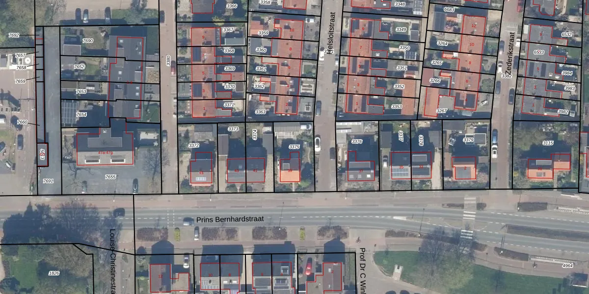 Gebruik de zoekbalk of klik op een perceel om informatie over het perceel te bekijken.