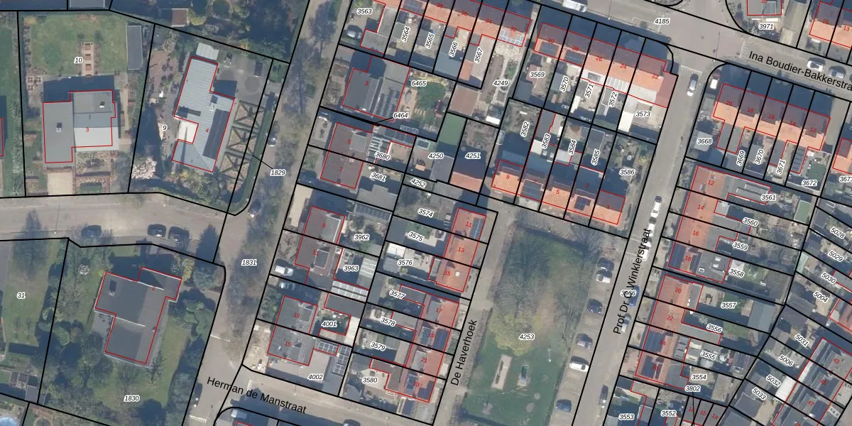 Gebruik de zoekbalk of klik op een perceel om informatie over het perceel te bekijken.
