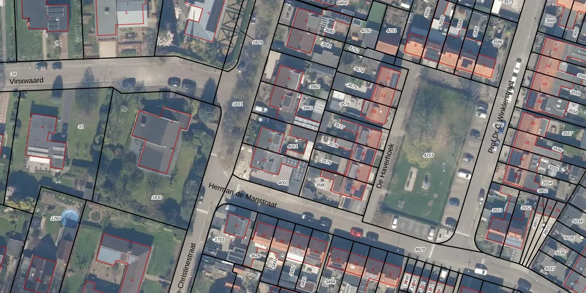 Gebruik de zoekbalk of klik op een perceel om informatie over het perceel te bekijken.