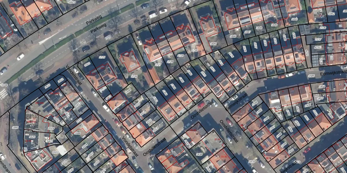 Gebruik de zoekbalk of klik op een perceel om informatie over het perceel te bekijken.