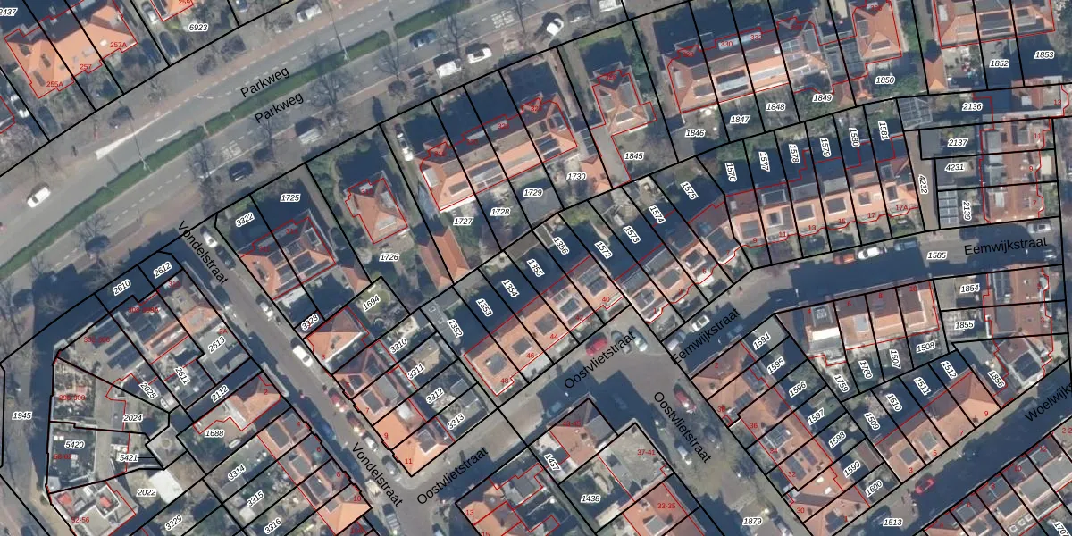 Gebruik de zoekbalk of klik op een perceel om informatie over het perceel te bekijken.