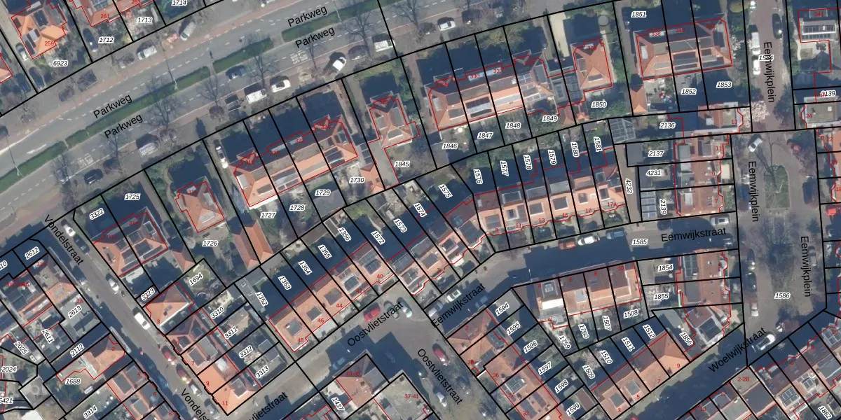 Gebruik de zoekbalk of klik op een perceel om informatie over het perceel te bekijken.