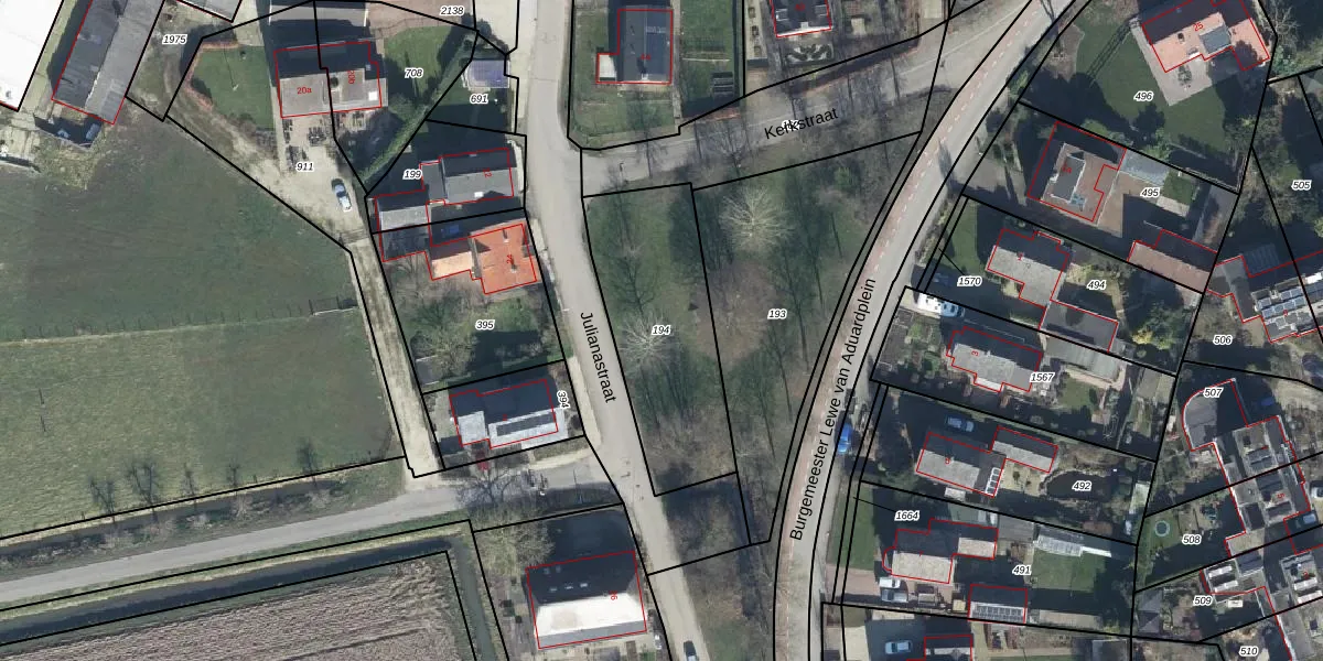 Gebruik de zoekbalk of klik op een perceel om informatie over het perceel te bekijken.