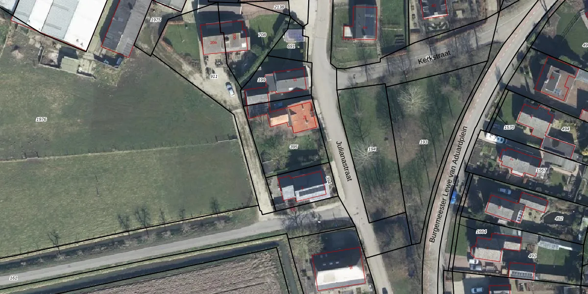 Gebruik de zoekbalk of klik op een perceel om informatie over het perceel te bekijken.