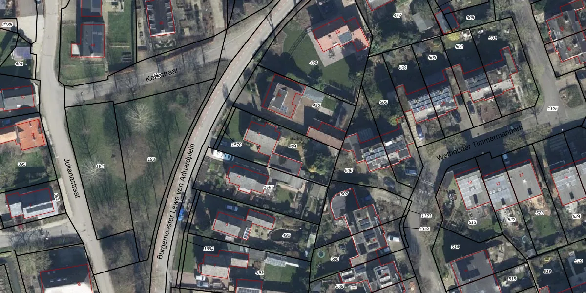 Gebruik de zoekbalk of klik op een perceel om informatie over het perceel te bekijken.