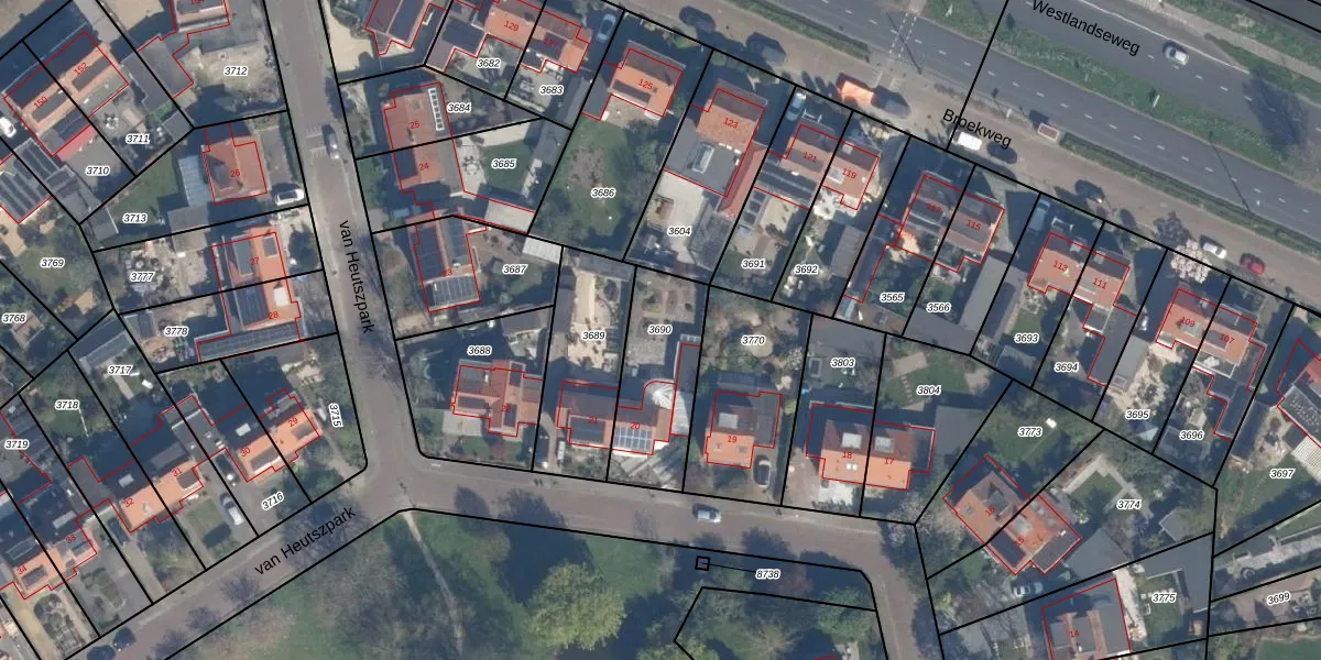 Gebruik de zoekbalk of klik op een perceel om informatie over het perceel te bekijken.