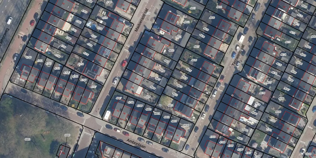 Gebruik de zoekbalk of klik op een perceel om informatie over het perceel te bekijken.