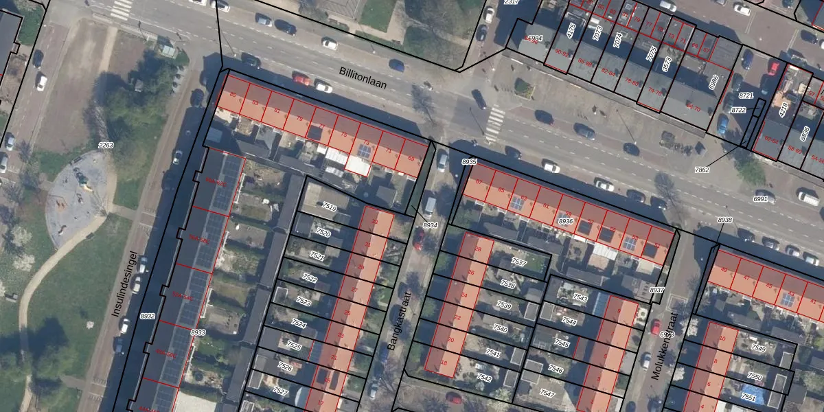 Gebruik de zoekbalk of klik op een perceel om informatie over het perceel te bekijken.