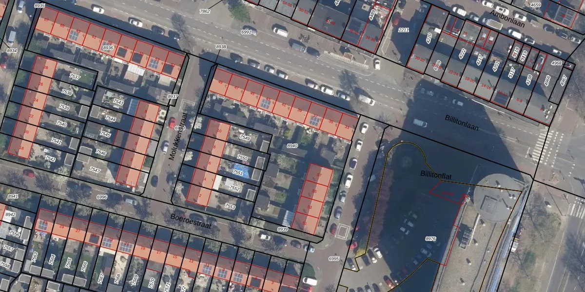 Gebruik de zoekbalk of klik op een perceel om informatie over het perceel te bekijken.