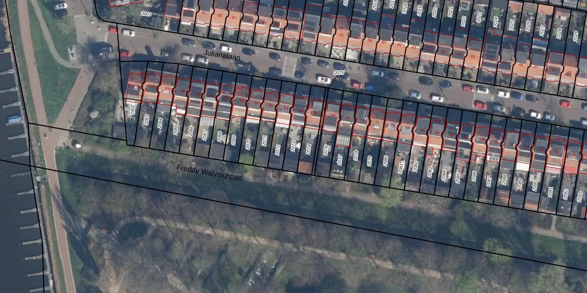 Gebruik de zoekbalk of klik op een perceel om informatie over het perceel te bekijken.