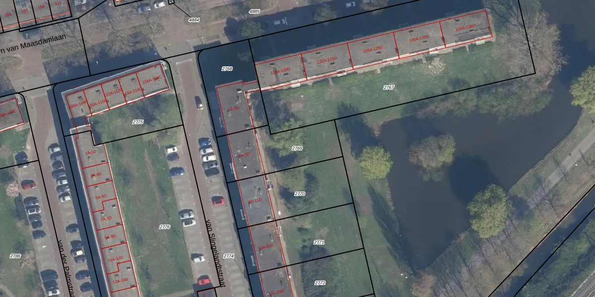Gebruik de zoekbalk of klik op een perceel om informatie over het perceel te bekijken.