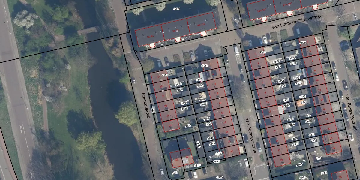 Gebruik de zoekbalk of klik op een perceel om informatie over het perceel te bekijken.
