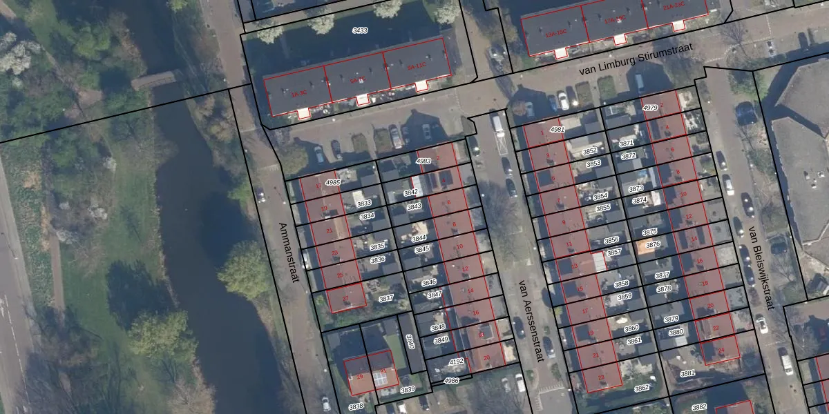 Gebruik de zoekbalk of klik op een perceel om informatie over het perceel te bekijken.