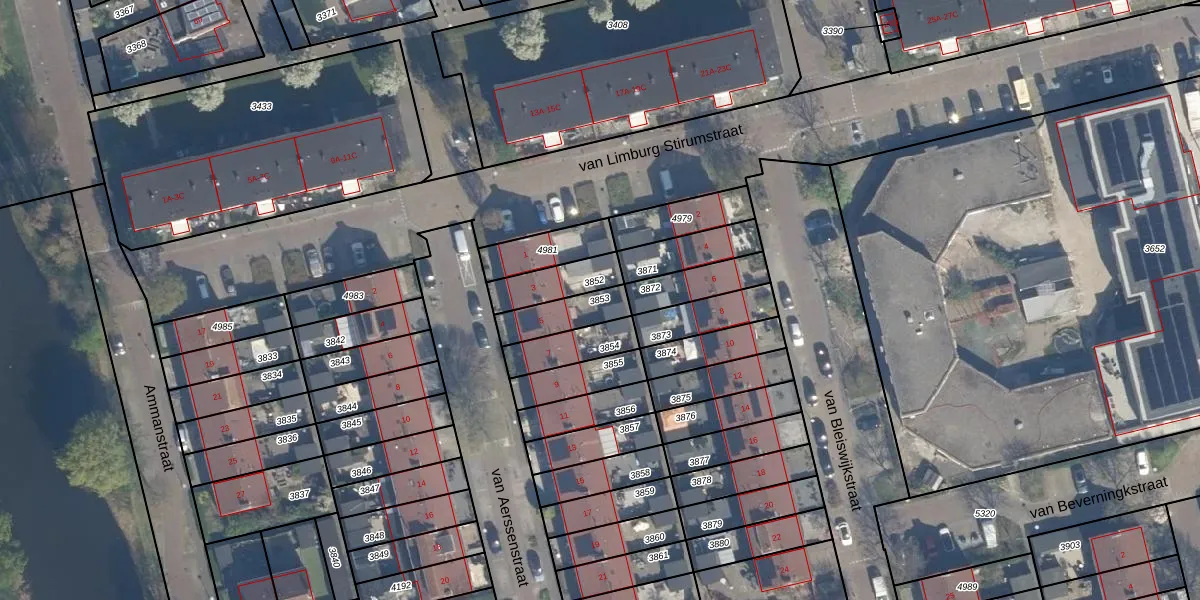 Gebruik de zoekbalk of klik op een perceel om informatie over het perceel te bekijken.