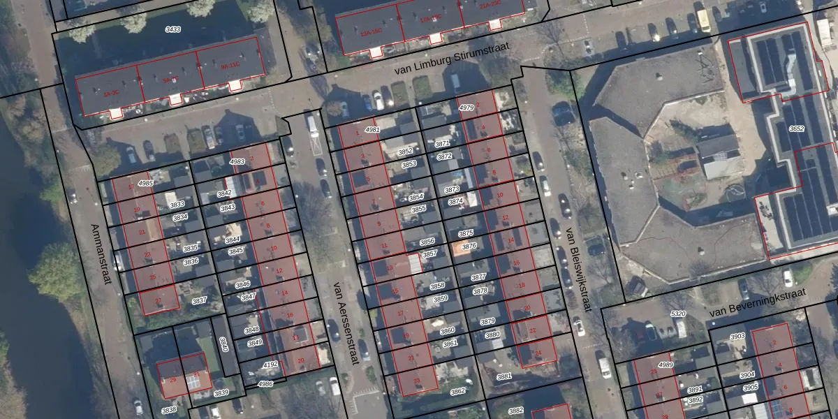 Gebruik de zoekbalk of klik op een perceel om informatie over het perceel te bekijken.