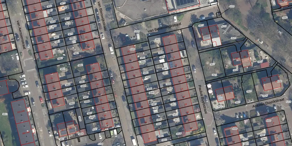 Gebruik de zoekbalk of klik op een perceel om informatie over het perceel te bekijken.