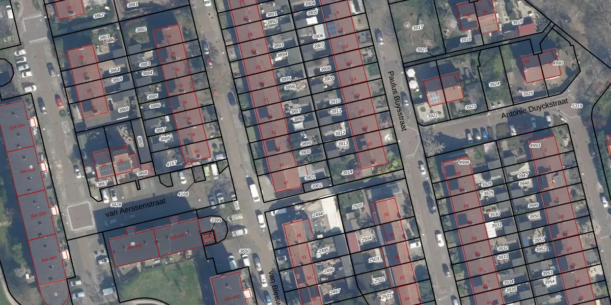 Gebruik de zoekbalk of klik op een perceel om informatie over het perceel te bekijken.
