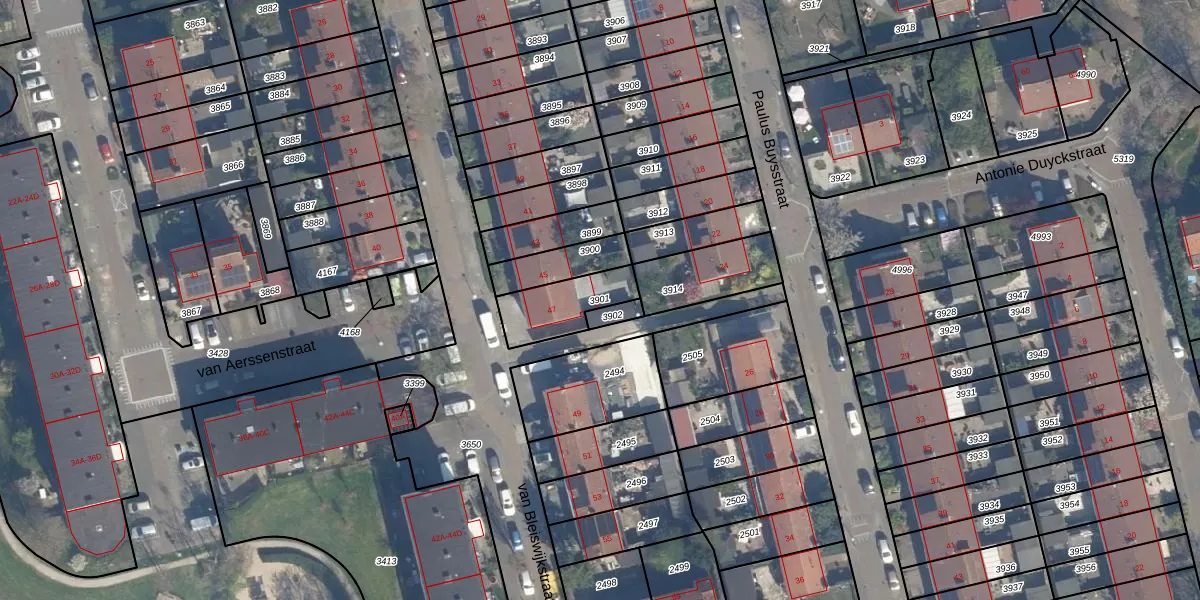 Gebruik de zoekbalk of klik op een perceel om informatie over het perceel te bekijken.