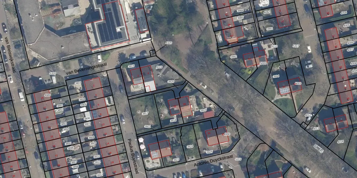 Gebruik de zoekbalk of klik op een perceel om informatie over het perceel te bekijken.