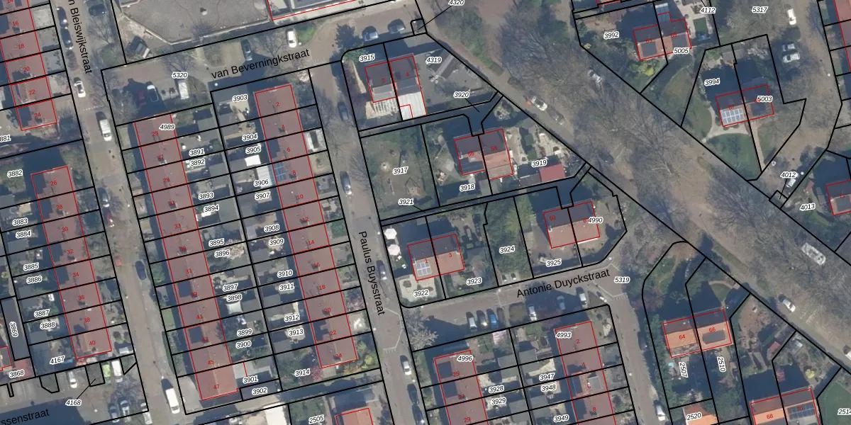Gebruik de zoekbalk of klik op een perceel om informatie over het perceel te bekijken.