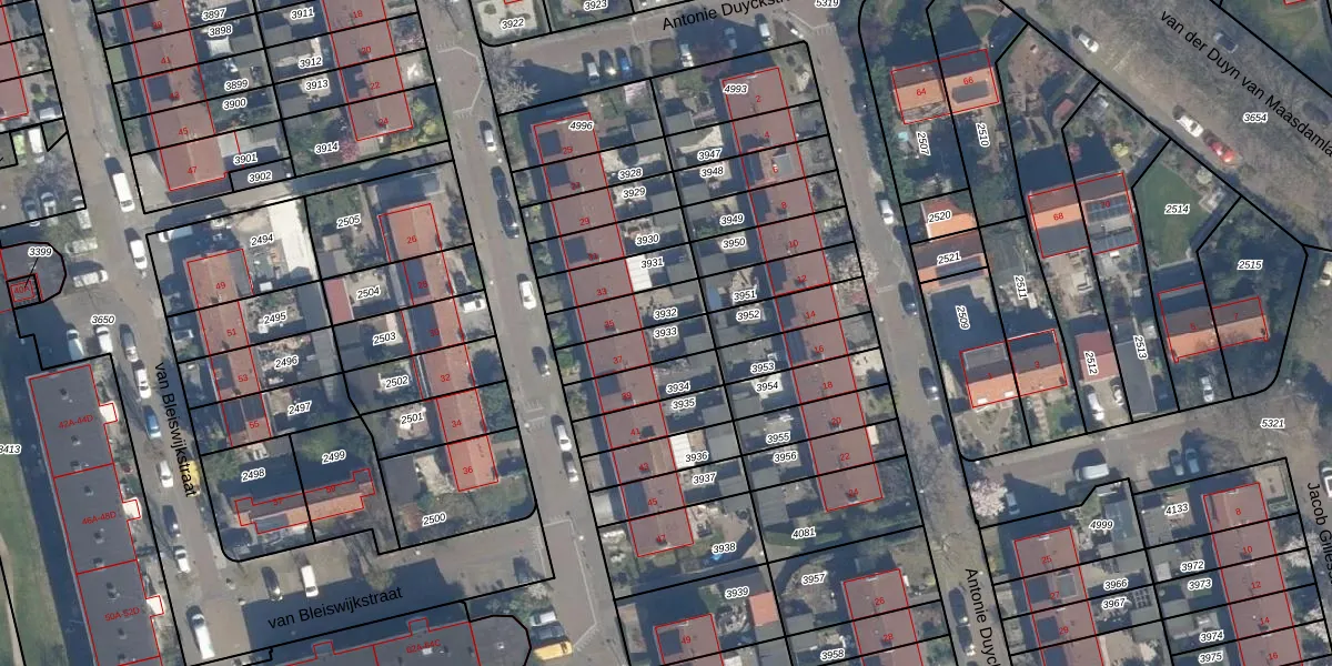 Gebruik de zoekbalk of klik op een perceel om informatie over het perceel te bekijken.