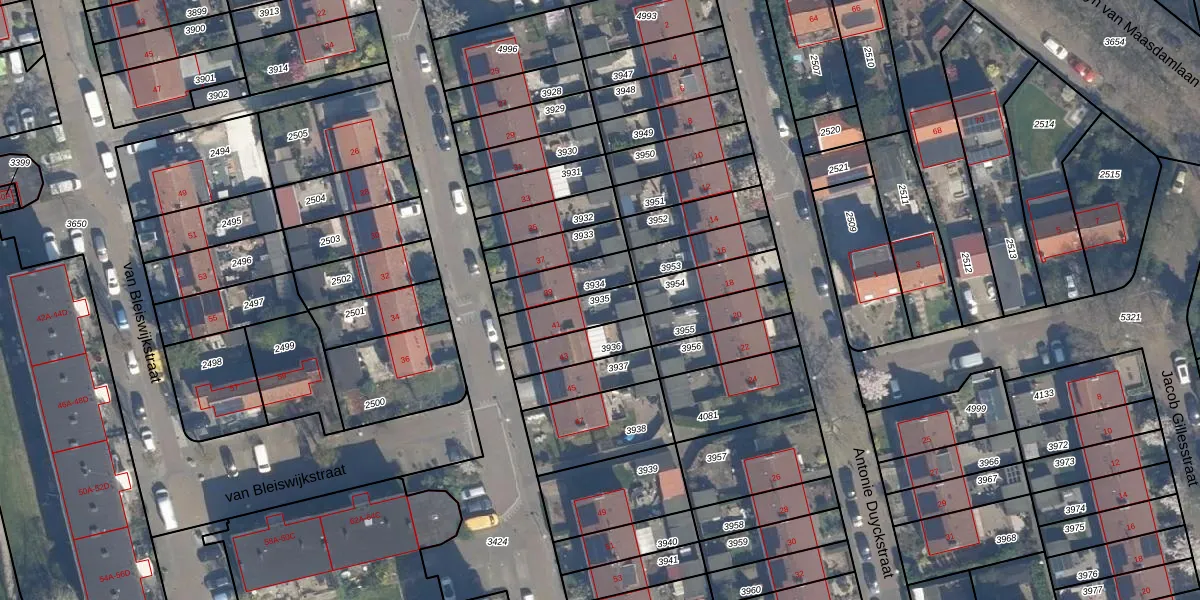 Gebruik de zoekbalk of klik op een perceel om informatie over het perceel te bekijken.
