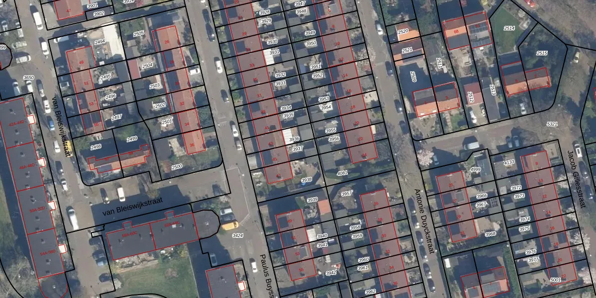 Gebruik de zoekbalk of klik op een perceel om informatie over het perceel te bekijken.