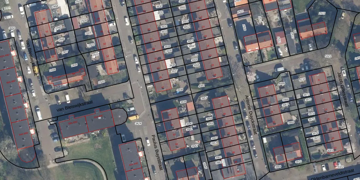 Gebruik de zoekbalk of klik op een perceel om informatie over het perceel te bekijken.