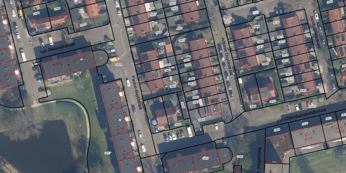 Gebruik de zoekbalk of klik op een perceel om informatie over het perceel te bekijken.