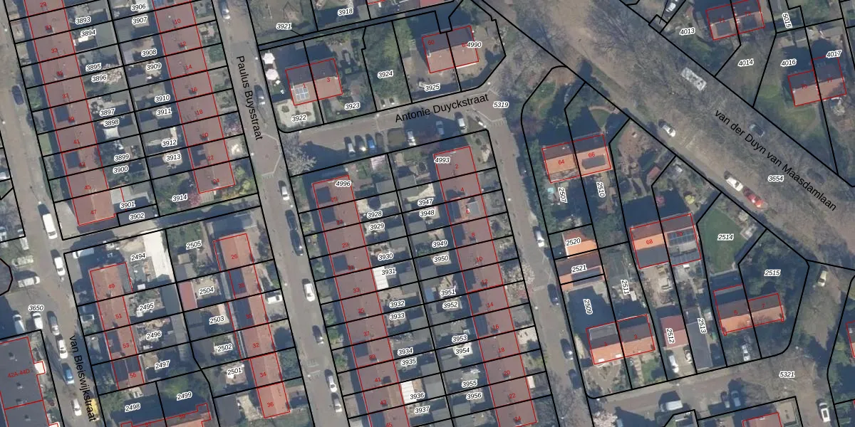 Gebruik de zoekbalk of klik op een perceel om informatie over het perceel te bekijken.