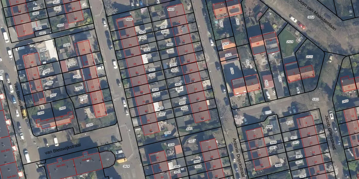 Gebruik de zoekbalk of klik op een perceel om informatie over het perceel te bekijken.