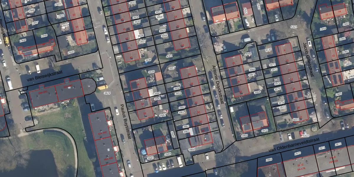 Gebruik de zoekbalk of klik op een perceel om informatie over het perceel te bekijken.